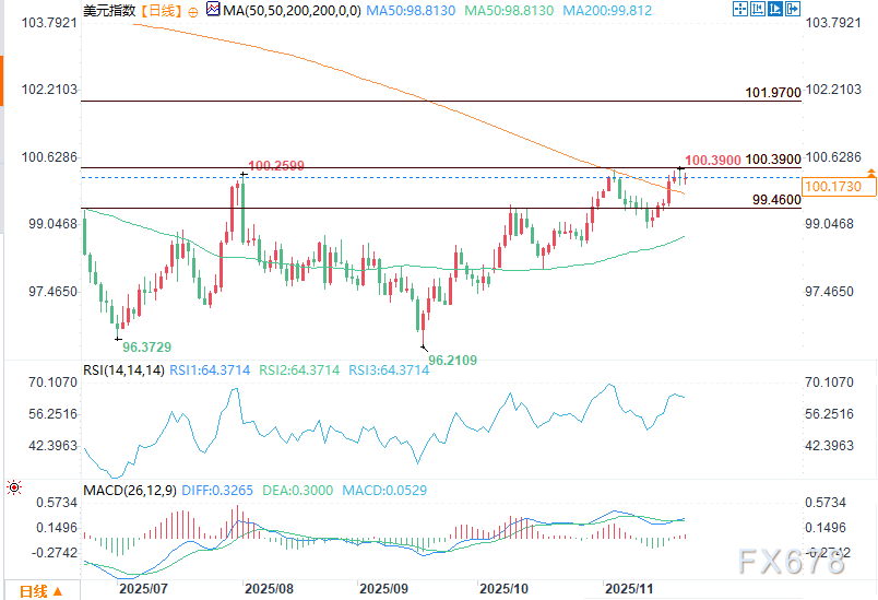 延迟发布的9月零售销售数据和生产者物价指数(PPI)将于周二公布,这些数据有望在美联储今年最后一次会议前重塑市场预期。目前交易员认为12月美联储降息25个基点的概率已超70%,若数据进一步走弱,市场可能会强化降息预期,进而给美元带来更多抛售压力。